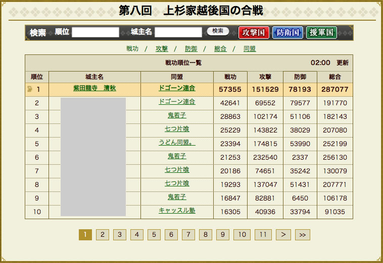 同盟順位はちと寂しい気も致しまするが、戦果上々、意気揚々。