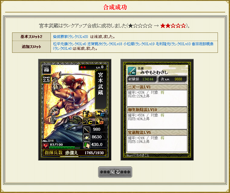 特武将をランクアップ合成で使う勇気がないので、上武将でやっます^^;