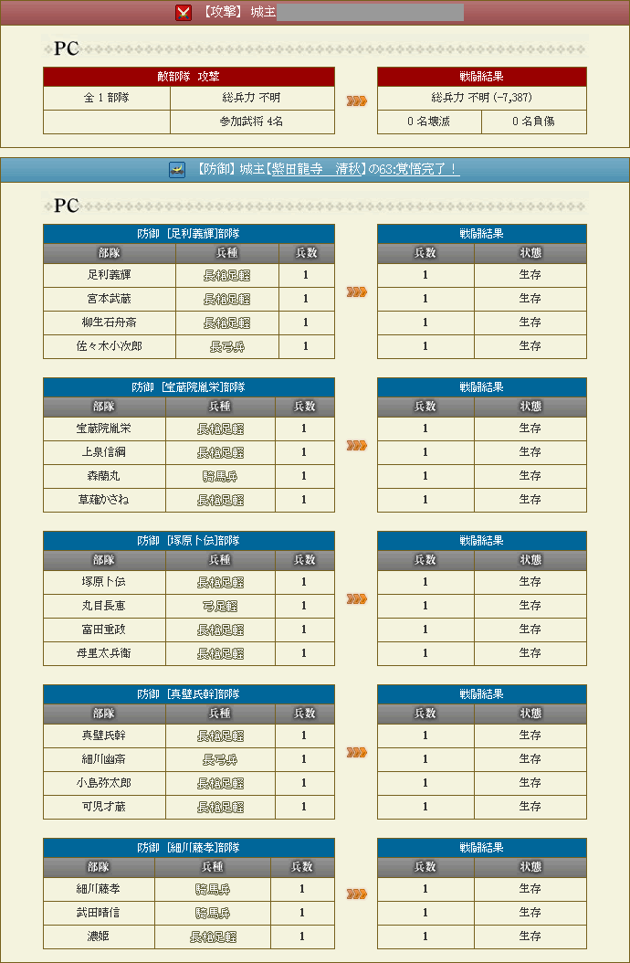 当方の防衛を担当された面々は以下の通りとなる。