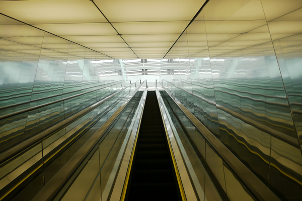 エレベーターは96階まで上昇する。展望台があるのは97階でそこまではエスカレーターを使って昇る。